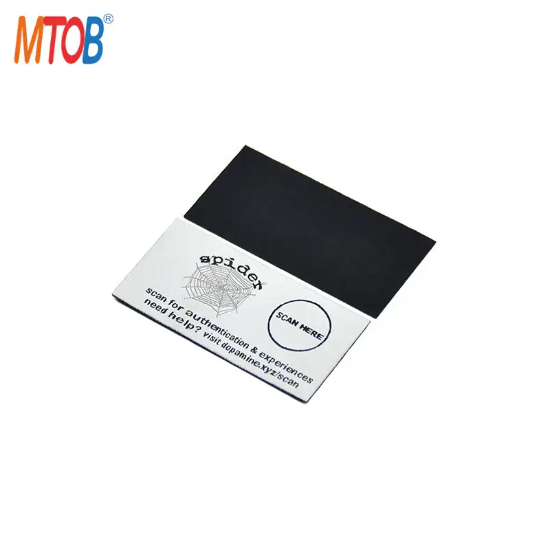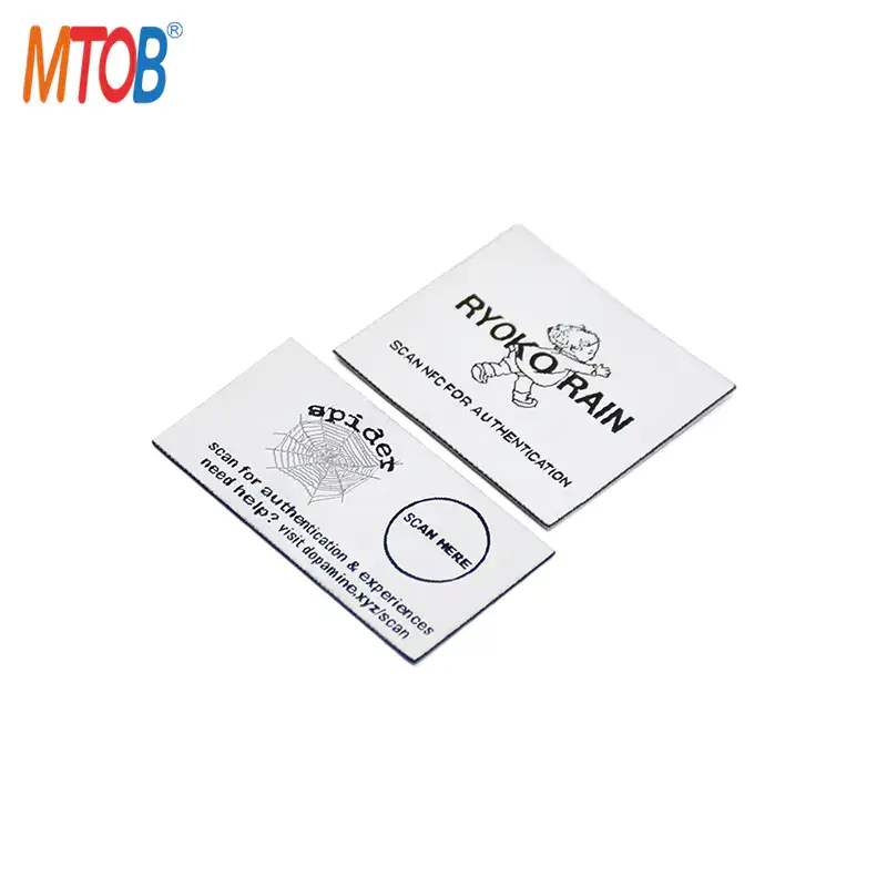 MTB-NC004 NFC clothing tags are built from fabric + FPC + hot melt adhesive, making them flexible, soft, and garment‑friendly. Fabric NFC patches can be sewn onto clothing or ironed on using a hot melt adhesive process. For high‑security applications, choose the NTAG 424 DNA Woven Tag – featuring AES‑128 encryption, mutual authentication, and anti‑cloning protection, ideal for luxury brand protection.
