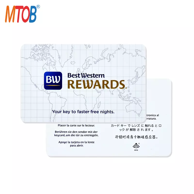 MTOB RFID hotel card professional work for Onity, Salto, Saflok, Ving card system. We provide passive RFID card for various application such as payment, access control, identification, transportation, etc. MTOB also offers RFID key fobs for hotels and other venues. Order your custom RFID Cards now!